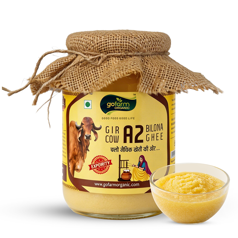 Crafted from the milk of indigenous Gir cows, our A2 Bilona Ghee is prepared using traditional churning methods to preserve its natural aroma, rich taste, and nutritional goodness. Pure, wholesome, and made the authentic way for a healthier lifestyle.