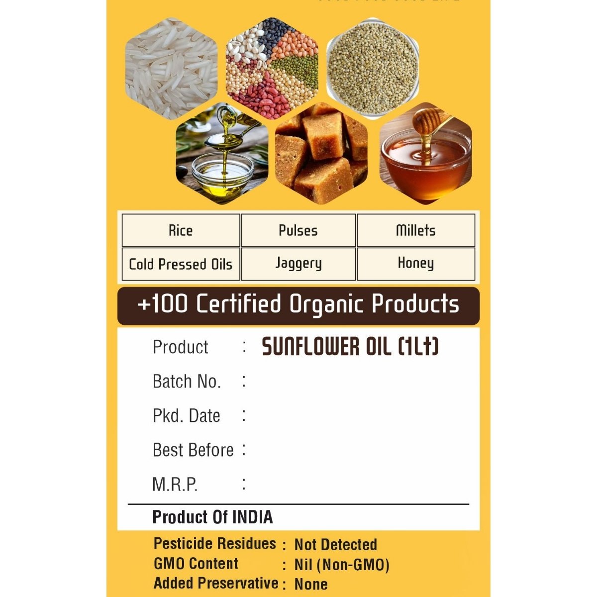 Organic Sunflower Oil is made from carefully selected sunflower seeds that are cold pressed to retain their natural flavor, aroma, and quality. This traditional extraction method helps preserve the purity and natural characteristics of the oil.